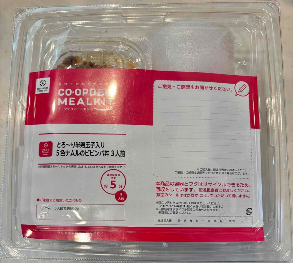 コープデリのミールキット「とろ~り半熟玉子入り5色ナムルのビビンバ丼」は