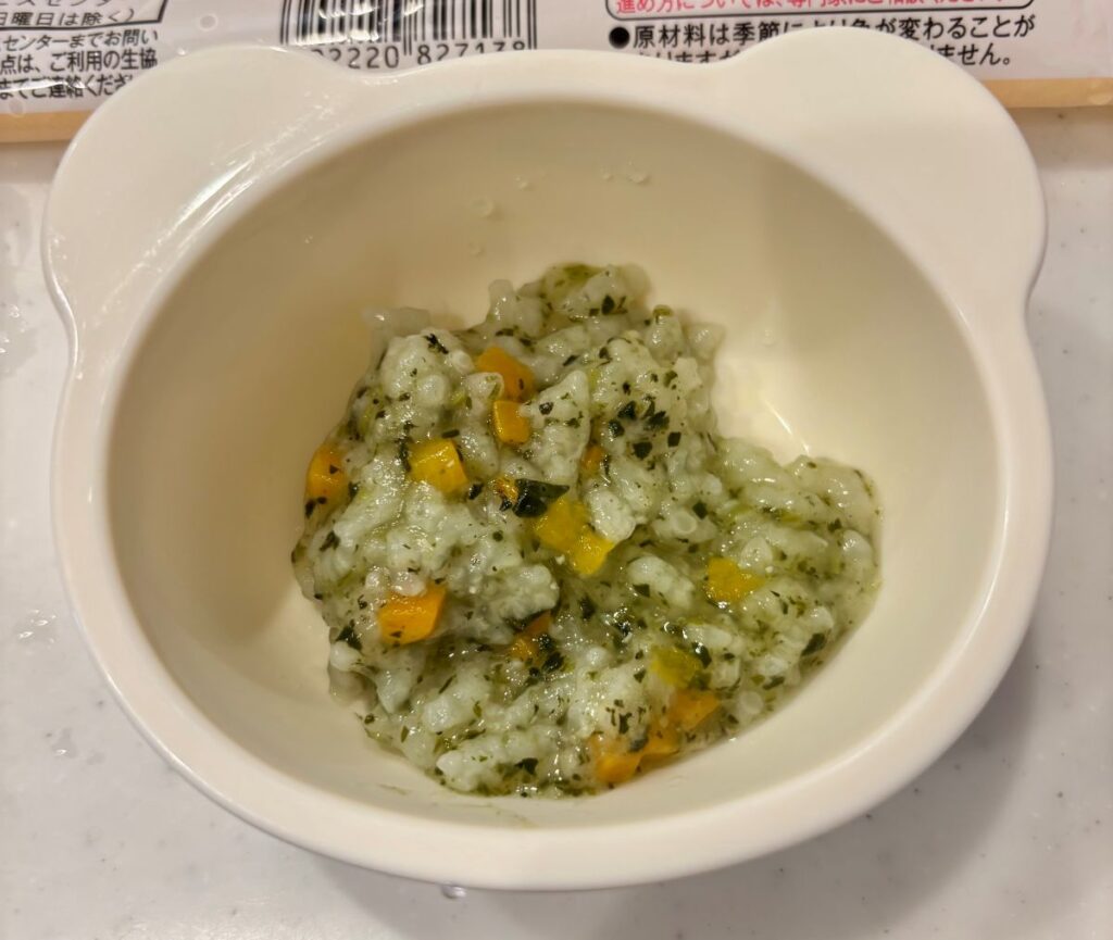 にんじん、ほうれん草、たまねぎといった定番野菜が使われており、栄養バランスの良さが魅力のおかゆですが…